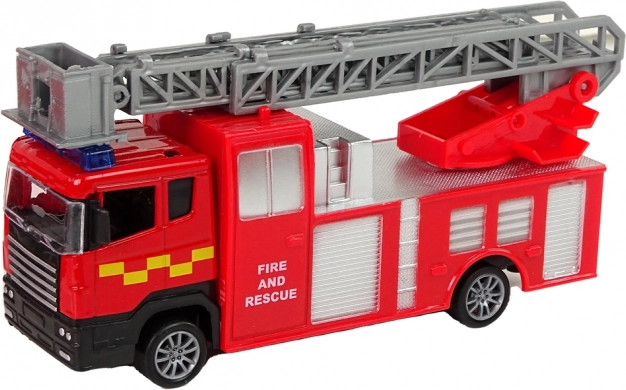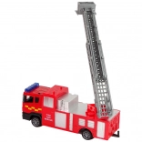 Camion avec échelle extensible d'une portée de 32 cm, reproduisant fidèlement un véhicule de pompiers. Le mécanisme à friction renforce le réalisme du jeu.