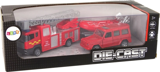 Le camion de pompiers avec échelle extensible est une réplique fidèle d'un véhicule réel et, grâce au mécanisme à friction, se déplace dynamiquement sur la surface. La voiture avec portes ouvrantes est en outre équipée d'une propulsion motorisée.