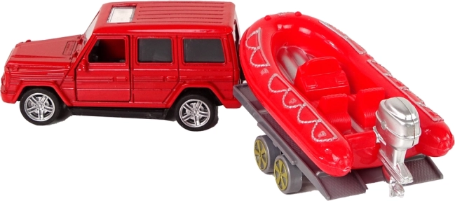Bateau pneumatique sur remorque, idéal pour les interventions de sauvetage sur l'eau, pouvant être attelé à la voiture.