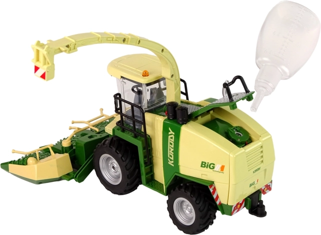 La télécommande à 2,4 GHz permet de contrôler précisément les déplacements de la moissonneuse vers l’avant, l’arrière et latéralement. Le design ergonomique garantit une prise en main confortable et une utilisation intuitive. Le jouet est également équipé de têtes rotatives qui bougent pendant la conduite, avec la possibilité de replier la tête en position de transport.