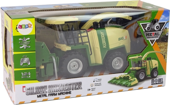 La commande à fréquence 2,4 GHz permet des mouvements précis, et la moissonneuse produit des effets lumineux et sonores avec option de génération de fumée.