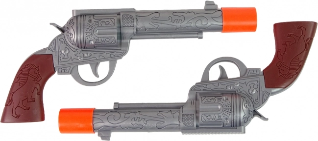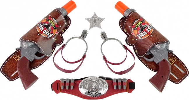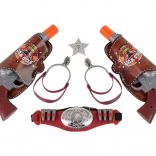 Ce set de cowboy complet transforme chaque enfant en courageux gardien de l’ordre. En appuyant sur la gâchette, le revolver émet un son de tir réaliste (alimentation AG13), tandis que la ceinture avec holsters garde les pistolets toujours à portée de main. Les embouts orange de sécurité et le plastique de qualité assurent un jeu sans souci, à la maison comme en extérieur.