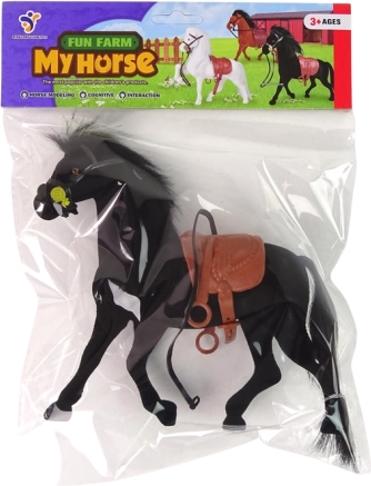 Figurine de cheval noir réaliste et agréable au toucher avec surface veloutée et selle marron. Fabriquée en matériaux de qualité, idéale pour les enfants à partir de 3 ans et pour compléter les collections d’animaux de la ferme.