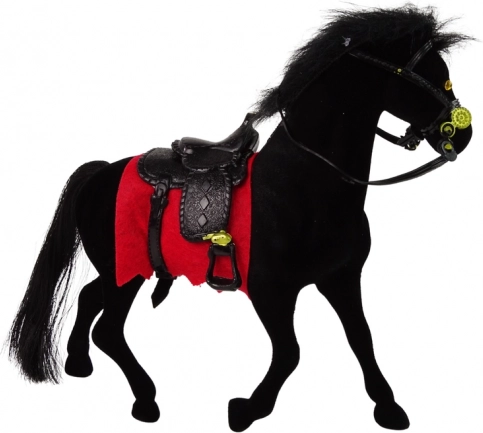 Adorable figurine en velours d’un cheval noir avec selle noire et tapis de selle rouge, parfaite pour les petits amoureux des fermes et des chevaux. Elle est fabriquée avec des matériaux de qualité, agréables au toucher, présente des détails réalistes et une taille idéale pour les enfants à partir de 3 ans.