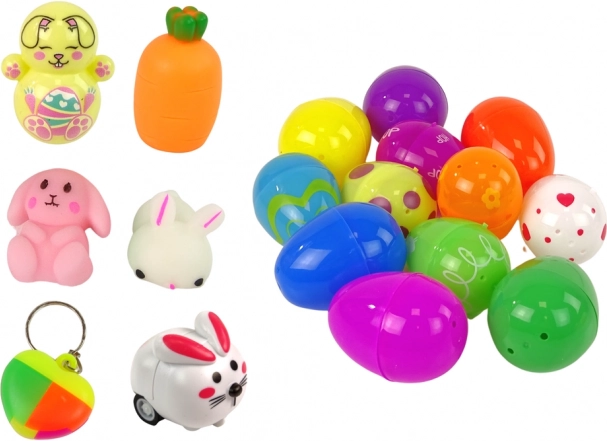 - 12 œufs en plastique, 6 mini jouets fidget, sac lapin