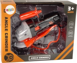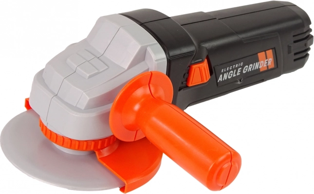 L'ensemble comprend une meuleuse à piles avec un design authentique noir et orange. En basculant l'interrupteur, le disque tourne, tout comme une véritable meuleuse. Pour assurer la sécurité pendant le jeu, des lunettes de protection sont disponibles.