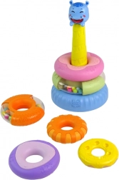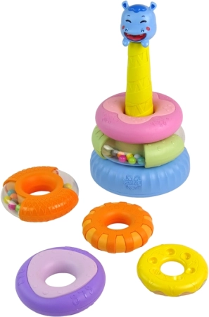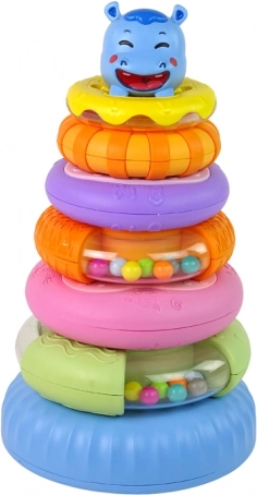 La pyramide éducative se compose de six anneaux colorés empilables dans différents ordres pour créer une pyramide. Au sommet de la pyramide se trouve un adorable hippopotame souriant. Chaque anneau a une taille et une couleur différentes, ce qui aide les enfants à apprendre à distinguer les couleurs, les tailles et les formes tout en exerçant leur coordination. Ce jeu développe également les capacités cognitives et la pensée logique, essentielles pour le développement correct de votre enfant!
