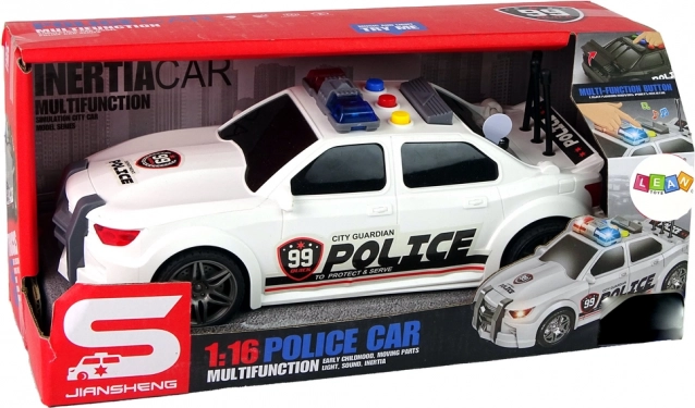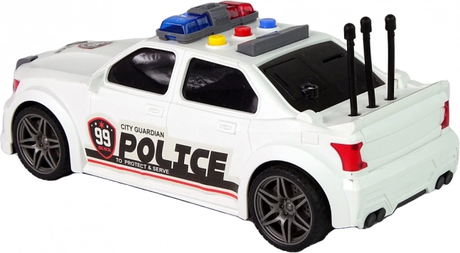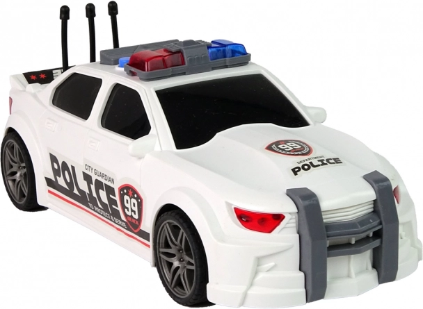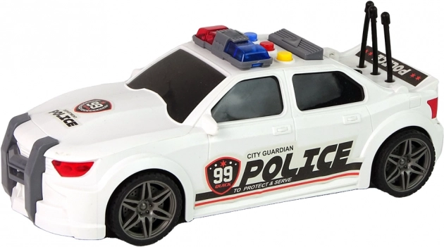 La voiture de sport blanche avec les inscriptions City Guardian Police et des marquages voyants offre un look authentique et stimule des missions policières créatives.