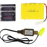 Comprend un pack rechargeable avec câble USB et des piles pour la télécommande – prêt à rouler dès le déballage.
