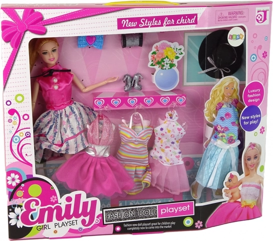 La poupée Emily ravira toutes les petites stylistes. Elle porte une tenue élégante avec un haut rose et une jupe évasée fleurie, complétée par des escarpins noirs. Grâce à ses articulations mobiles, vous pouvez facilement la placer dans différentes poses. Le set comprend plusieurs robes et accessoires, pour un style différent chaque jour.