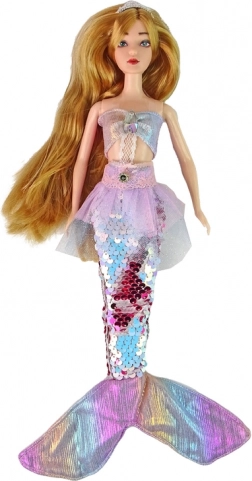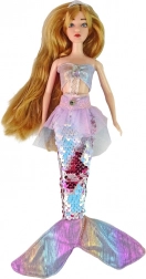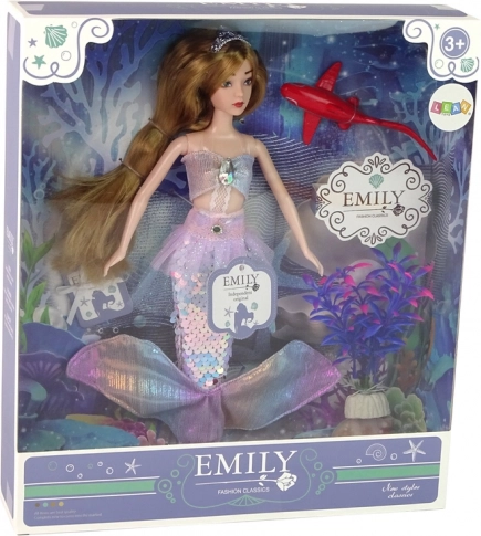 La poupée Emily invite les enfants dans un univers d’aventures sous-marines. Grâce à ses longs cheveux blonds, son haut brillant et sa queue scintillante avec paillettes réversibles, elle ressemble à une véritable princesse des mers. En passant la main, les paillettes changent pour des nuances fuchsia et créent un effet fascinant.