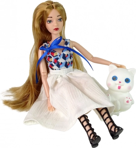 Découvrez la poupée élégante EMILY avec de longs cheveux délicatement coiffés, un top moderne et une jupe blanche. Grâce aux bras et jambes articulés, les enfants peuvent facilement lui faire prendre différentes poses et créer leur propre défilé de mode. Un chaton blanc adorable complète chaque scénario de jeu.