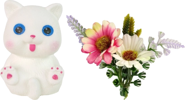 Le chaton blanc aux yeux bleus élargit les possibilités de jeu. Idéal pour inventer des histoires et prendre soin des animaux.