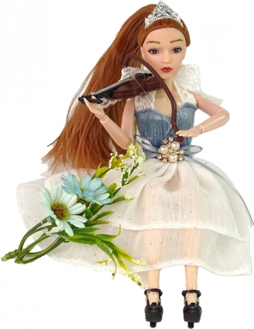 Apportez magie et imagination au jeu de votre enfant avec la poupée EMILY. Elle porte une robe bleu et blanc avec de délicats éléments décoratifs et une fleur à la taille, sa tête est ornée d’un diadème scintillant, et elle peut tenir un violon pour des prestations musicales. Les traits réalistes du visage et ses longs cheveux invitent au brossage et au coiffage.