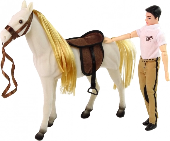Découvrez un monde de jeux d’aventure avec cette poupée cavalière et son cheval blanc ! Un set parfait pour tout jeune passionné de chevaux, qui élargit les possibilités de jeu et développe l’imagination. Le jouet comprend une poupée aux membres articulés pour diverses positions de jeu et une tenue stylée, fidèle à la mode équestre. Le cheval blanc, fabriqué dans une matière agréable, a une apparence réaliste, avec selle et filet inclus.