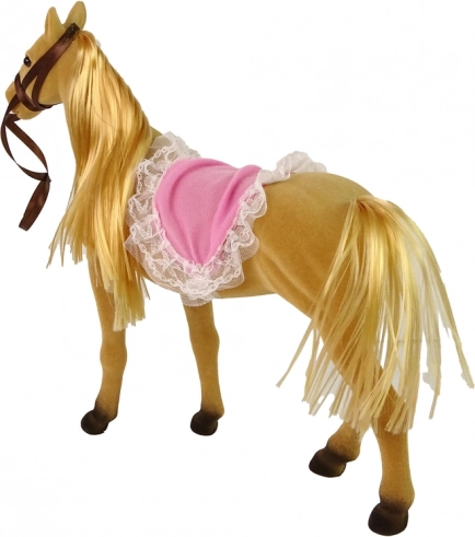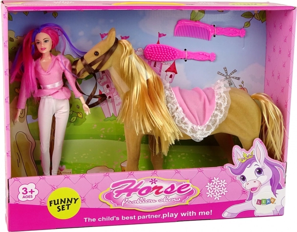 Le cheval brun est doté d’une magnifique selle rose et d’une longue crinière que vous pouvez coiffer avec la brosse et le peigne inclus.