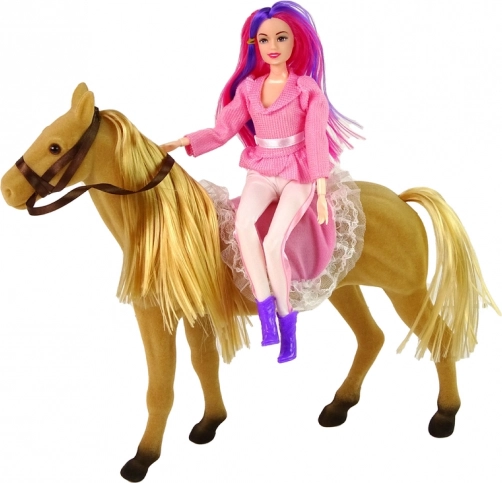 Entrez dans un monde de fantaisie avec la poupée cavalière et son superbe cheval brun. La poupée a les bras et les jambes flexibles, ce qui permet de la placer dans différentes positions, qu’elle soit debout ou assise sur le cheval. Sa tenue élégante est typiquement équestre, ajoutant de l’authenticité au jeu.