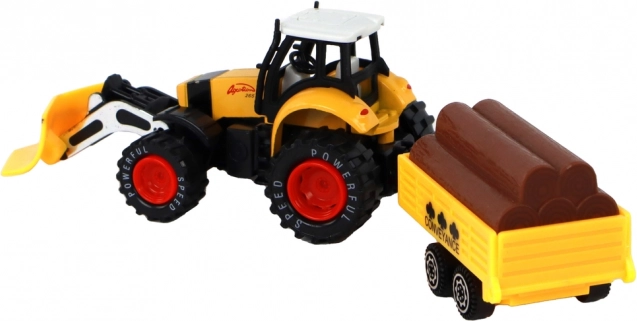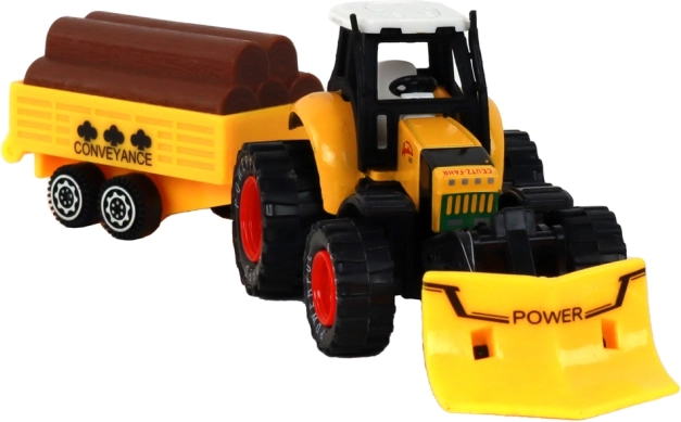 Le tracteur est équipé d'un mécanisme à friction qui permet de manipuler facilement le déplacement du tracteur. Les enfants peuvent jouer à la ferme et transporter divers matériaux sur la remorque, équipée d'imitations de troncs d'arbres.