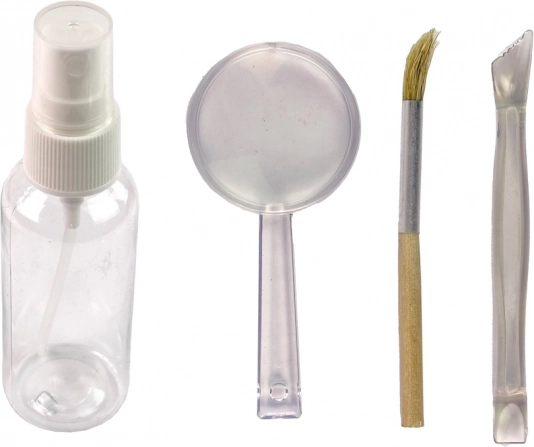 Contient tout le nécessaire pour le petit archéologue, y compris une bouteille d'eau, des pinceaux, des loupes et des outils de fouille.