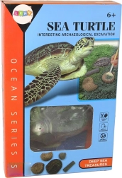 Ensemble éducatif complet pour les amateurs de vie sous-marine et d'archéologie. À l'intérieur du fossile réaliste de tortue mesurant 14 cm x 11 cm, vous trouverez des fouilles cachées, comme des ammonites.