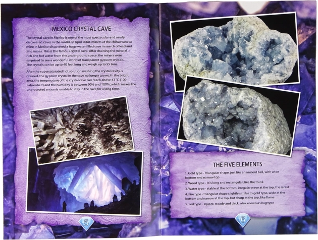 Le kit comprend un guide scientifique en anglais, élargissant les connaissances sur les cristaux et leurs formations.