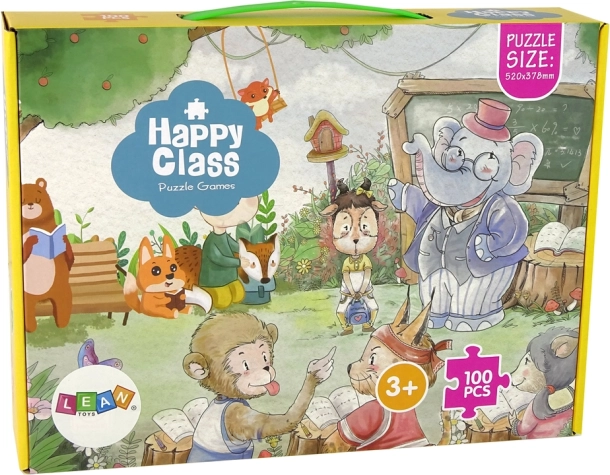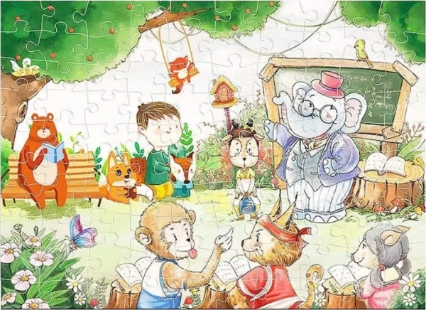 Le puzzle École des Animaux de 100 pièces propose une vue fascinante du monde animal, où un éléphant professeur s’occupe des animaux comme de ses élèves. Cette illustration éducative de 52 cm x 37,8 cm aide les enfants à développer leurs compétences cognitives et leur créativité en explorant l’univers des animaux.