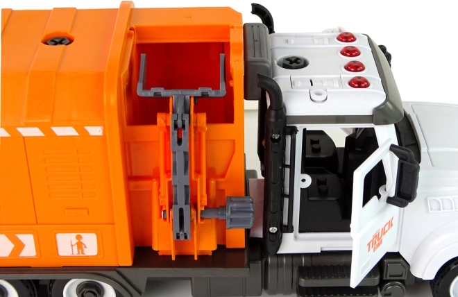 Le mécanisme de levage latéral permet de simuler une véritable collecte des déchets – les enfants peuvent accrocher un bac et basculer son contenu dans la benne.