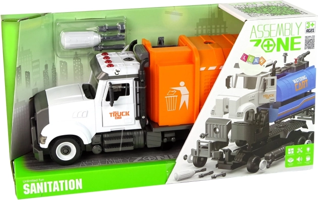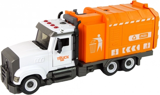 Ce camion poubelle interactif à visser, en orange et blanc, offre aux enfants un jeu réaliste et pédagogique. Il propose des lumières et des sons, une propulsion à friction, des portes ouvrantes et un bras élévateur mobile pour les bacs. Un tournevis avec embouts interchangeables est inclus pour démonter et remonter le véhicule, développant la motricité fine et la créativité. Convient aux enfants à partir de 3 ans.