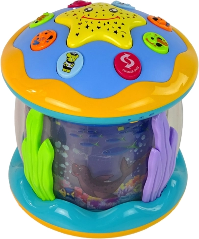 Cette veilleuse interactive avec projecteur projette au plafond un ciel étoilé et crée une atmosphère rassurante pour un sommeil paisible. Les motifs 3D rétroéclairés avec de petits animaux marins captivent les enfants pendant la journée, tandis que le soir, les mélodies et les doux effets lumineux les apaisent. D’une simple pression sur l’étoile souriante, vous activez la projection du ciel étoilé.