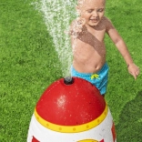 L’arroseur en forme de fusée offre un rafraîchissement estival amusant en projetant l’eau vers le haut.