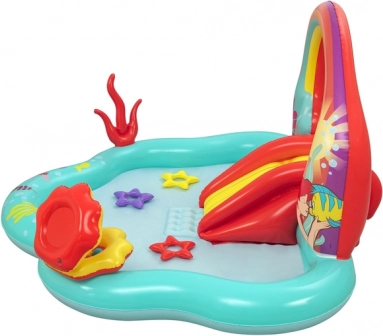 L'aire de jeux aquatique gonflable Bestway Petite Sirène apporte un monde féérique dans votre jardin. Fabriqué en PVC durable, ce terrain de 221 cm x 193 cm x 117 cm offre beaucoup de divertissement et d'imagination pour les enfants à partir de 2 ans. Les enfants apprécieront le toboggan avec un coussin doux et la fontaine activable par un raccordement à un tuyau de jardin.