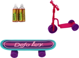 Nous présentons un set de poupées qui offre des expériences créatives et interactives aux enfants. Cette collection colorée comprend deux poupées : une plus grande avec un casque violet et une plus petite, une poupée enfant, avec un casque rose. La trottinette rose et le skateboard turquoise complètent parfaitement l’ensemble. Les enfants peuvent s’amuser pendant des heures en créant des histoires et des scénarios uniques.