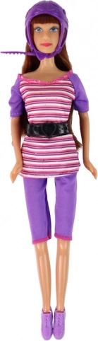 Le set comprend deux poupées. L’une des grandes poupées porte un casque violet, tandis que la plus petite a un adorable casque rose.