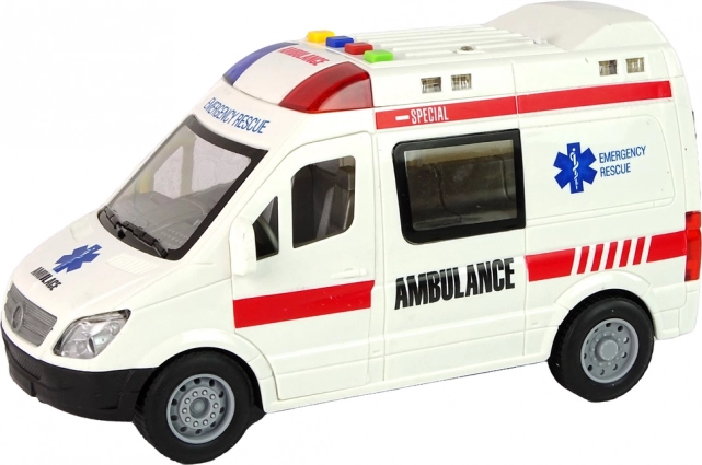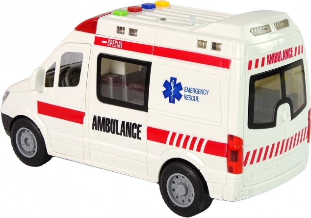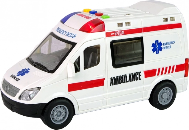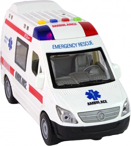 L’ambulance est fabriquée en plastique résistant, avec des pneus en caoutchouc pour un déplacement silencieux et sûr sur diverses surfaces, ainsi que des éléments réalistes comme des inscriptions, des gyrophares et des fenêtres. Elle stimule la créativité, les jeux de rôle et la motricité fine.
