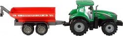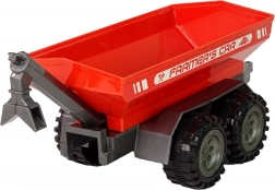 La remorque rouge se fixe et se détache facilement. Les enfants peuvent “transporter des chargements”, imiter les activités agricoles et inventer leurs propres histoires.
