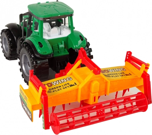 Ce tracteur vert, finement détaillé, avec un cultivateur orange-rouge à atteler offre aux enfants une expérience de ferme authentique. Des pneus réalistes, une cabine ouverte et des accessoires fonctionnels encouragent le jeu créatif et développent l’imagination.