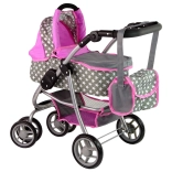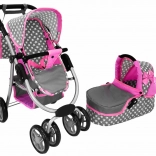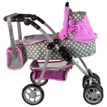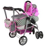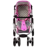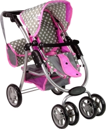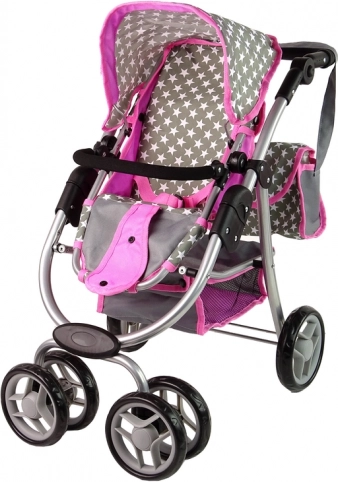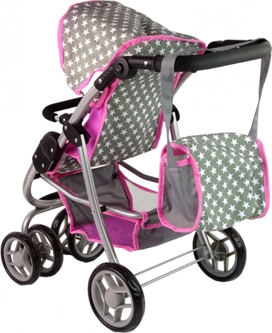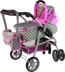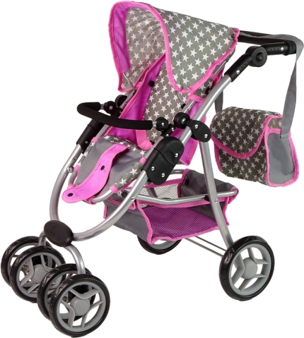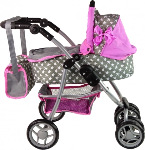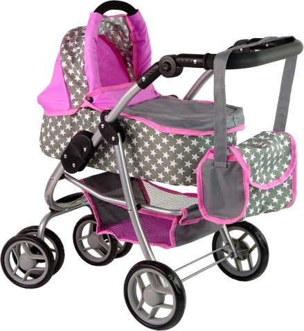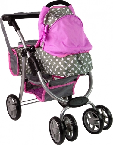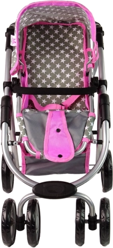 La poussette pour enfants avec étoiles roses et grises dynamise les jeux quotidiens de vos enfants. Fabriquée avec des matériaux de qualité, elle apporte aux enfants un sentiment de soin et de responsabilité. Son design réaliste rappelle une vraie poussette et les roues avant permettent une manipulation et des manœuvres faciles.