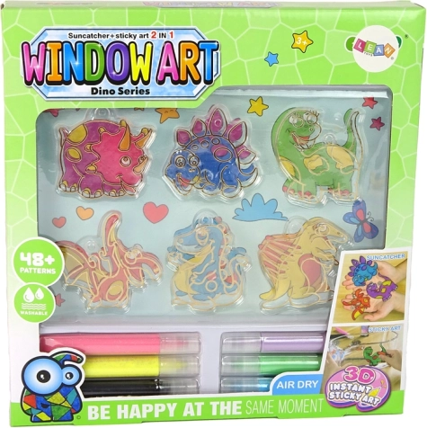 Le kit comprend également 6 vitraux en forme de dinosaures, qui peuvent être collés sur le verre à l’aide de ventouses spéciales.