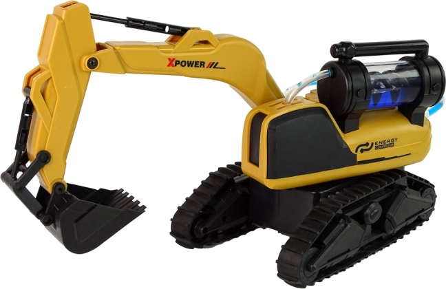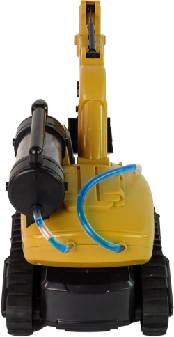 Les chenilles en caoutchouc assurent un déplacement stable et fluide sur diverses surfaces, tandis que les effets sonores et l’élément visuel avec liquide bleu sur la partie supérieure de la machine offrent une atmosphère authentique de chantier. La télécommande ergonomique tient bien même dans de petites mains.