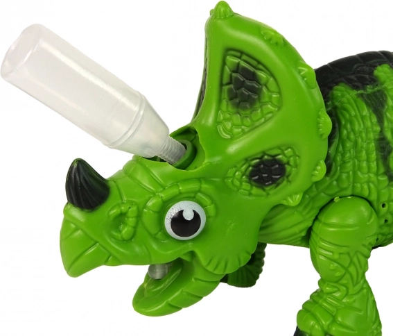 Le dinosaure est conçu avec une structure simple, grâce à laquelle votre enfant peut facilement découvrir son propre dinosaure ! Sous les cornes se trouve une ouverture spéciale dans laquelle il suffit de verser quelques gouttes d’eau, et de la vapeur sortira de la gueule. Cette fonction est entièrement sûre pour les enfants.