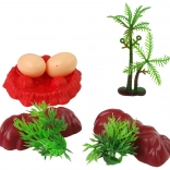 Vous trouverez également trois petits dinosaures, qui apportent dynamisme et variété au jeu. Des accessoires tels que deux rochers, deux buissons et deux œufs offrent un décor authentique, et la base ajoute du réalisme au scénario. Un arbre complète l’ensemble et favorise la création d’histoires dans un environnement naturel.
