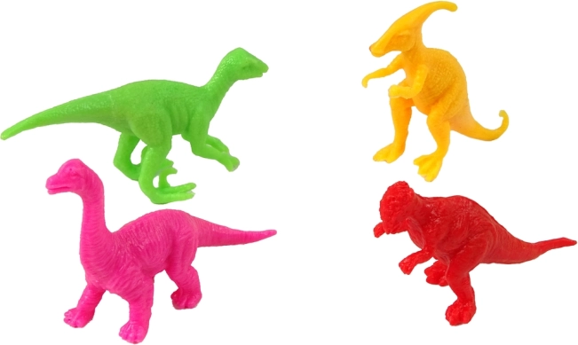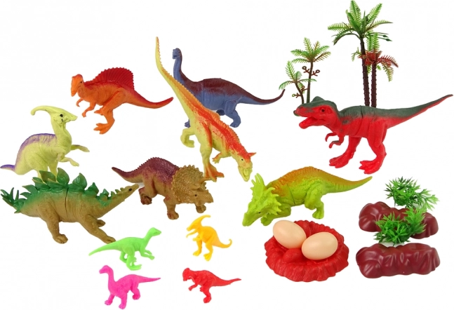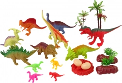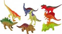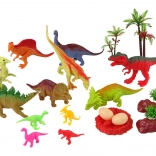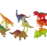 Le set comprend huit grandes et quatre petites figurines de dinosaures, chacune représentant une espèce différente et arborant sa couleur unique.