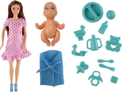 L'ensemble comprend divers accessoires, comme des jouets, biberons, un bavoir bleu et de la vaisselle avec cuillères - idéal pour s'occuper du « bébé ». L'emballage est stylisé et en fait un cadeau parfait pour les petits soignants, tout en développant les compétences sociales et émotionnelles des enfants.