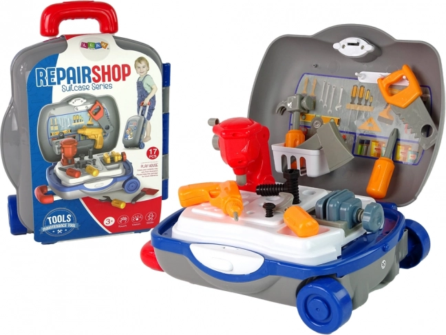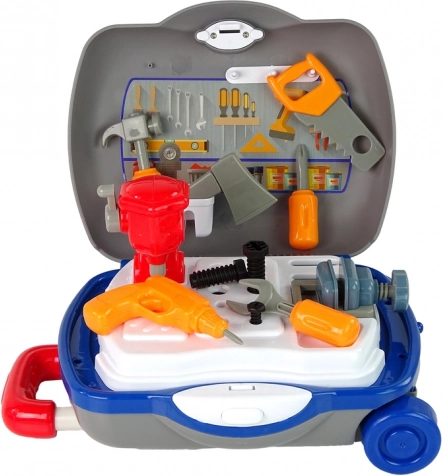 La mallette à outils mobile transforme chaque enfant en petit réparateur. L’ensemble comprend des outils en plastique sûrs et un plan de travail pour jouer à la maison comme en voyage. Set de 17 pièces, valise sur roulettes avec poignée télescopique et rangement facile favorisent la créativité et la motricité fine. Convient à partir de 3 ans, conforme aux normes EN71 et CE.