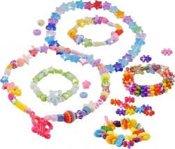 Créez vos propres bracelets et colliers originaux grâce à ce kit de fabrication de bijoux. Il contient un assortiment coloré de perles et de breloques de formes variées (fleurs, petites perles, étoiles, strass) ainsi que des cordons pour l’enfilage. Favorise la créativité et la motricité fine et constitue un excellent cadeau pour les enfants dès 5 ans dans un emballage cadeau avec fenêtre transparente.