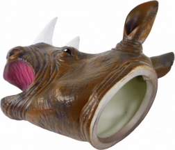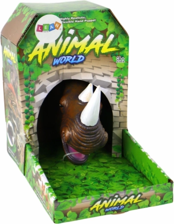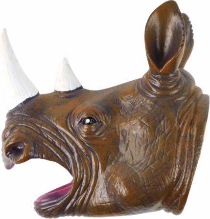 Cette marionnette à main rhinocéros paraît particulièrement réaliste : elle possède de grands yeux noirs expressifs, des cornes finement sculptées et une surface texturée rappelant la peau. Le caoutchouc souple est agréable en main et permet de manipuler facilement la mâchoire et les expressions, transformant chaque histoire en un théâtre vivant.