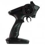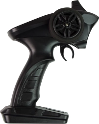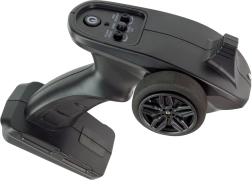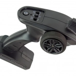 Radiocommande ergonomique type pistolet avec volant, permettant une conduite fluide avant/arrière et latérale, la sélection de la vitesse et l’activation du pilote automatique.