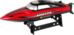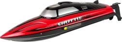 Ce bateau RC vif nommé Shuttle est prêt à naviguer dès le déballage – il suffit d’insérer la batterie fournie et de prendre le large. Grâce à sa propulsion puissante, il atteint jusqu’à 25 km/h, tandis que la protection anti-collision préserve la coque lors de manœuvres serrées. La radiocommande ergonomique type pistolet tient parfaitement en main et permet un pilotage précis.