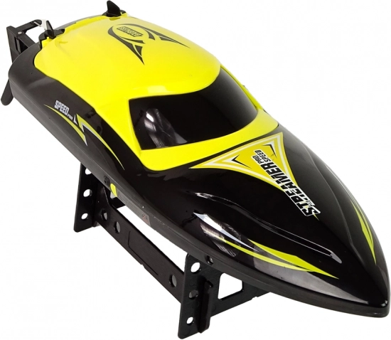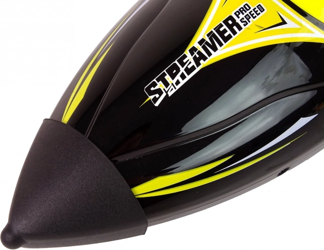 L’émetteur moderne 2,4 GHz assure un pilotage fluide sans interférences, permet d’utiliser plusieurs bateaux en même temps et offre une fonction d’autopilote ainsi qu’un sélecteur de vitesse.