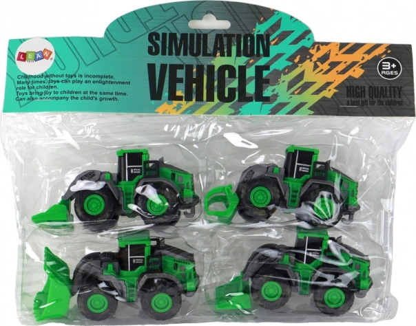 Découvrez un ensemble de quatre tracteurs verts qui apportent un divertissement complet. Chaque tracteur présente un aspect réaliste inspiré de véritables machines agricoles, pour le plus grand plaisir des petits fermiers.